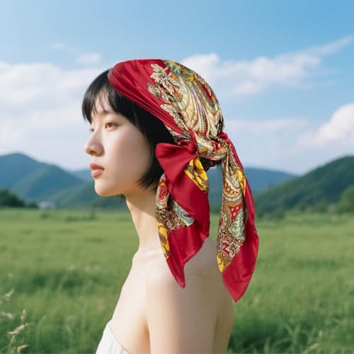 35” Satin Head Scarf Women Large Square Silk Feel Bandana Red Satin Hair Wrap Kerchief for Hair Wrapping, Sleeping & Pirate Costume (1PC) 5