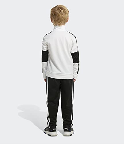 adidas Boys' Little Tricot Jacket & Pant Clothing Set, White Stripe 3S, 4 (AG6415C) 4