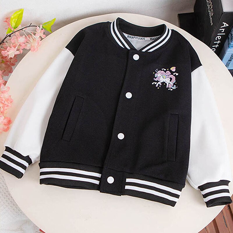 HOT ! Kids Girls' Baseball Jacket Unicorn Active Buttons School Cotton Coat Outerwear 3-12 Years Fall Black Pink Blue