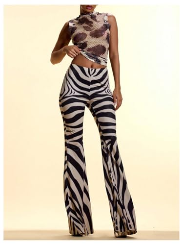 - Features: Casual flare pants for women, animal zebra striped pants, low waist, elastic waist, flare leg pants, long pants, womens pants, fashionable