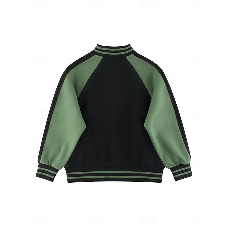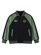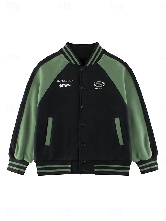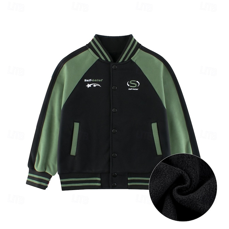 More information about Kids Unisex Baseball Jackets Outerwear Star Long Sleeve Patchwork Pocket Coat School Cotton Fashion Cool Black Fall Winter 7-13 Years