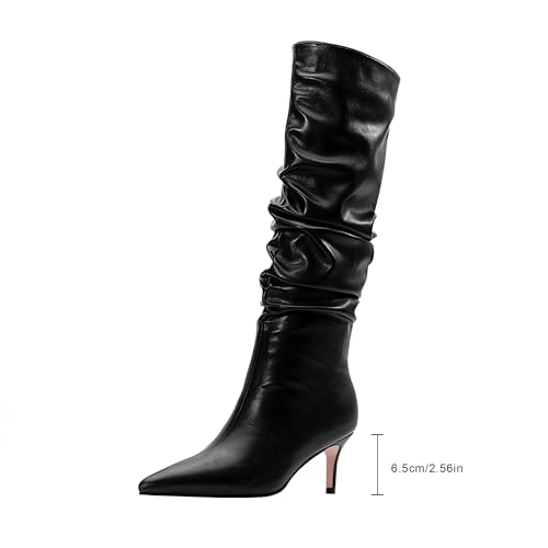 Women's Stiletto Kitten Heel Pointed Toe Slouchy Dress Knee High Boots Boots 6