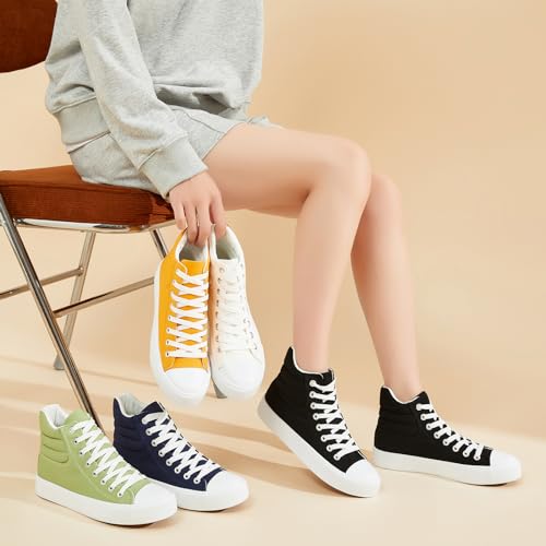 POVOGER High Top Sneakers for Women White Womens High Tops Canvas Shoes Black Fashion Sneakers Casual Lace up Tennis Shoes 6