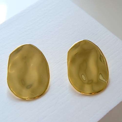 HOT ! Oversized Organic-Shaped Earrings | 18K Gold Plated Large Shield Earrings Polished Statement Earrings for Women