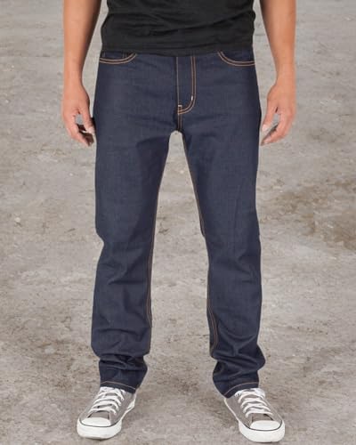 • Shaka Wear Jeans are raw denim which is the purest from of cotton twill fabric. Never washed, distressed or treated in any way, Shaka Wear jeans have the classic American look and feel. Straight fit with zipper fly and five pocket styling.