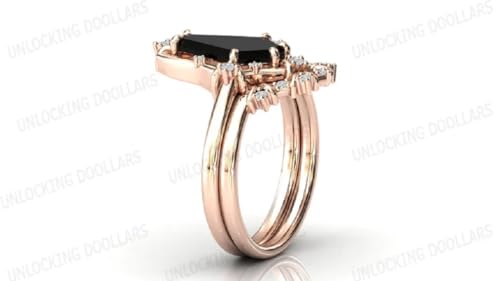 Vintage 1.00 CT Coffin Shaped Black Onyx Engagement Ring For Women Coffin Shaped Wedding Ring Set Coffin Cut Gemstone Ring Set Anniversary Ring Set 3