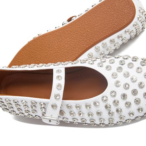 Rhinestone Ballet Flats for Women Sparkly Crystals Ballerina Shoes Women's Buckled Strap Mary Jane Flat Comfort Casual Low Heels 7