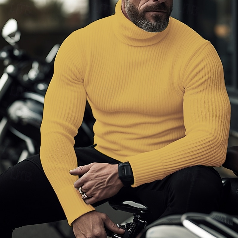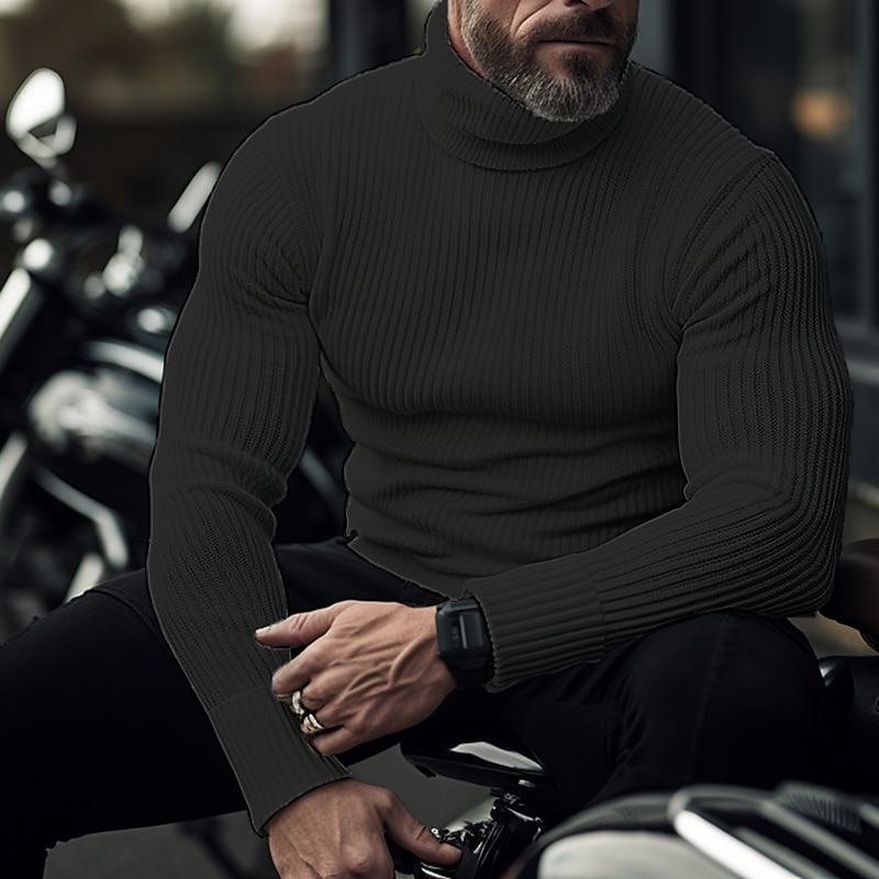 Men's Turtleneck Sweater Pullover Sweater Jumper Knit Sweater Ribbed Knit Regular Tops Pitted Plain Roll Neck Keep snug contemporary Contemporary Casual Daily Wear Clothing Apparel Fall Winter Black White