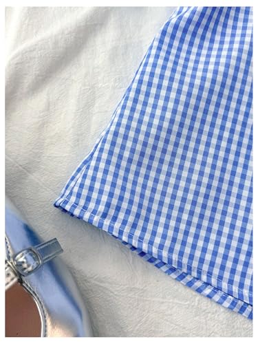 SOLY HUX Girl's Plaid Gingham Tops Sweetheart Neck Puff Sleeve Peplum Cute Summer Blouse 5