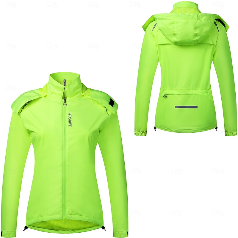 HOT ! WOSAWE Women's Cycling Jacket Windbreaker Cycling Jersey High Visibility Windproof Rain Waterproof Back Pocket Bike Jacket Tracksuit Mountain Bike MTB Road Bike Cycling City Bike Cycling Black Green