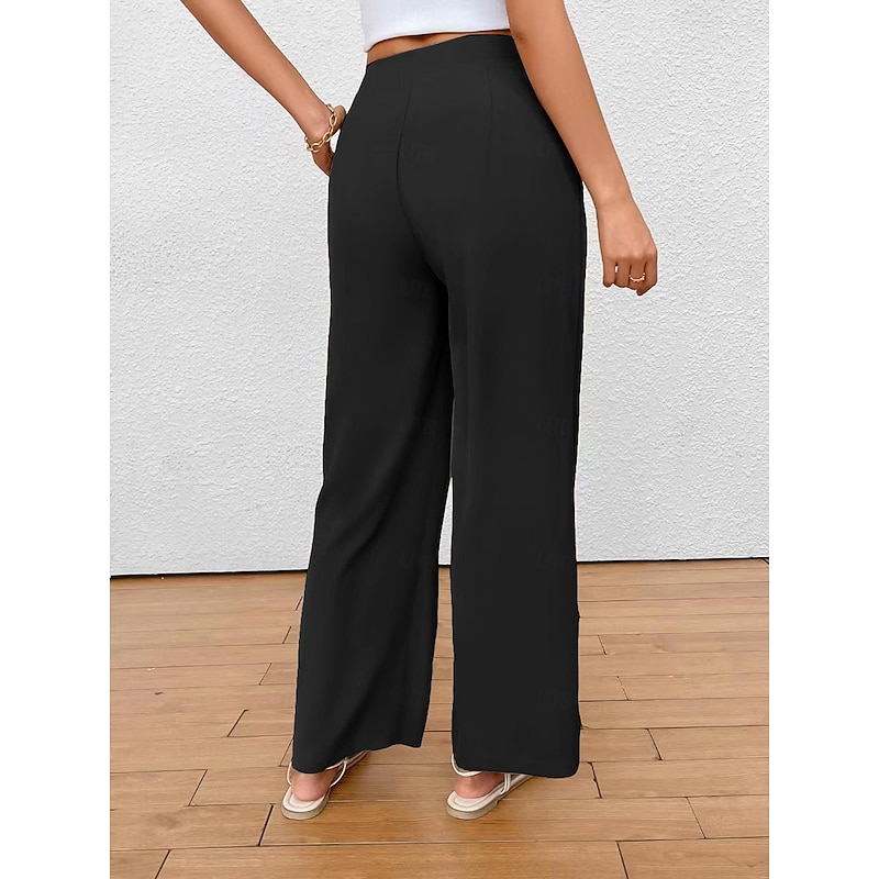 More information about Women's Wide Leg Pants Trousers Fashion Long Plain Wide Leg Breathability Comfortable Micro-elastic Daily Wear Black Khaki Spring & Summer Regular Fit