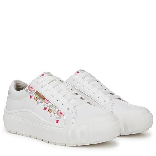 Dr. Scholl's Women's Time Off Sneaker, White Floral Embroidery, 9 5