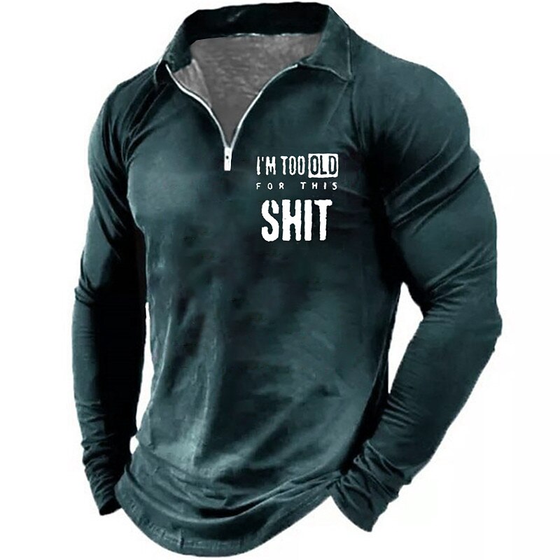 Men's Funny Zip Polo Shirts Golf Shirt Long Sleeve Polo Shirts Collared Shirts Vintage Casual Streetwear Festival Wear Party Outfits 3D Print Quarter Zip Polo Lake blue Black Wine