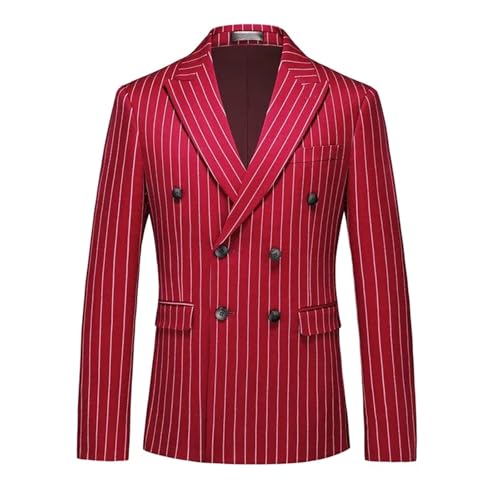 Men's White Vertical Stripe Blazers Double Breasted Slim Fit Dress Jacket Wedding Party Coat 6
