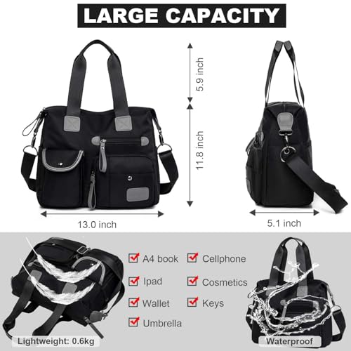 Women's Multi-Functional Tote Purse - Large Nylon Shoulder Bag with 9 Pockets for Work, Travel & Nursing 5