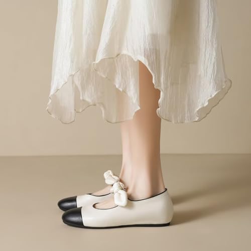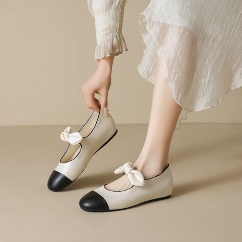 ChaiRong Zhou Women Cute Bowknot Pu Leather Shoes Soft Insole Round Toe Low Heel Ballet Flats Lightweight Dress Prom Party Office Shoes 6