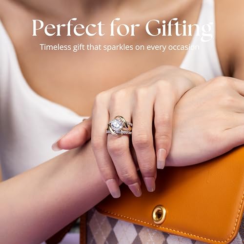 4Ct 925 Sterling Silver Round Cubic Zirconia Bow Solitaire Ring Two tone CZ Engagement Ring for Women Size 5-10 6