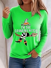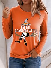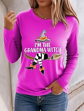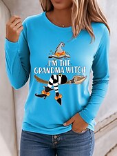 More information about Halloween Women's T shirt Witch Long Sleeve Graphic Letter Vintage Fashion Stylish Long Sleeve Crew Neck Regular Tops Daily Weekend Print Pink Blue Orange Green Spring Fall Winter Prefall