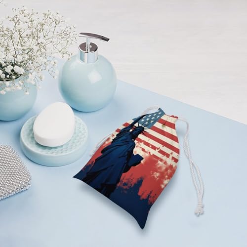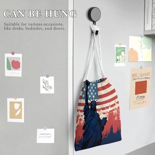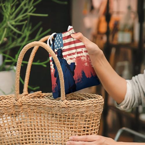 Flag with Silhouette of Lady Liberty Drawstring Storage Bag, Reusable & Stylish Jewelry Pouch, Small Canvas Storage Bag for Travel, Jewelry, Gift, 20 * 25cm 7