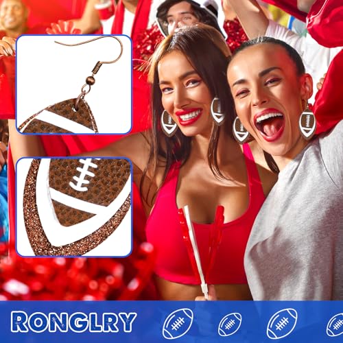 HOT ! Ronglry Football Earrings for Women Colorful Layered Game Day Drop Dangle Earrings Glitter Leather Earrings for Women Dangling Sports Lover Gifts Teardrop Earrings Fun Game Day Football Jewelry for Women