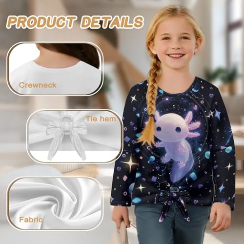 Long Sleeve Shirts for Girls Tie Knot Front Tops Kids School Clothes Sports Activewear 5