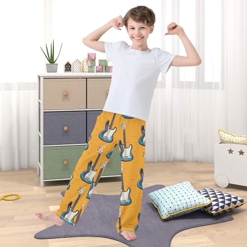Bass Guitar Boys Pants Boys Athletic Pants Long Pant for Boywith Pockets Wide-Leg Size 6-14Y 6