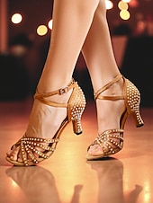More information about Women's Black Rhinestone Strappy Dance Shoes - 1920s Gatsby Ballroom Latin Heels for Party & Performance