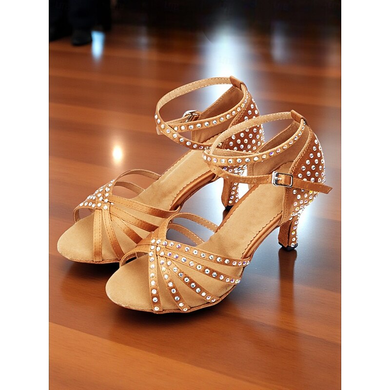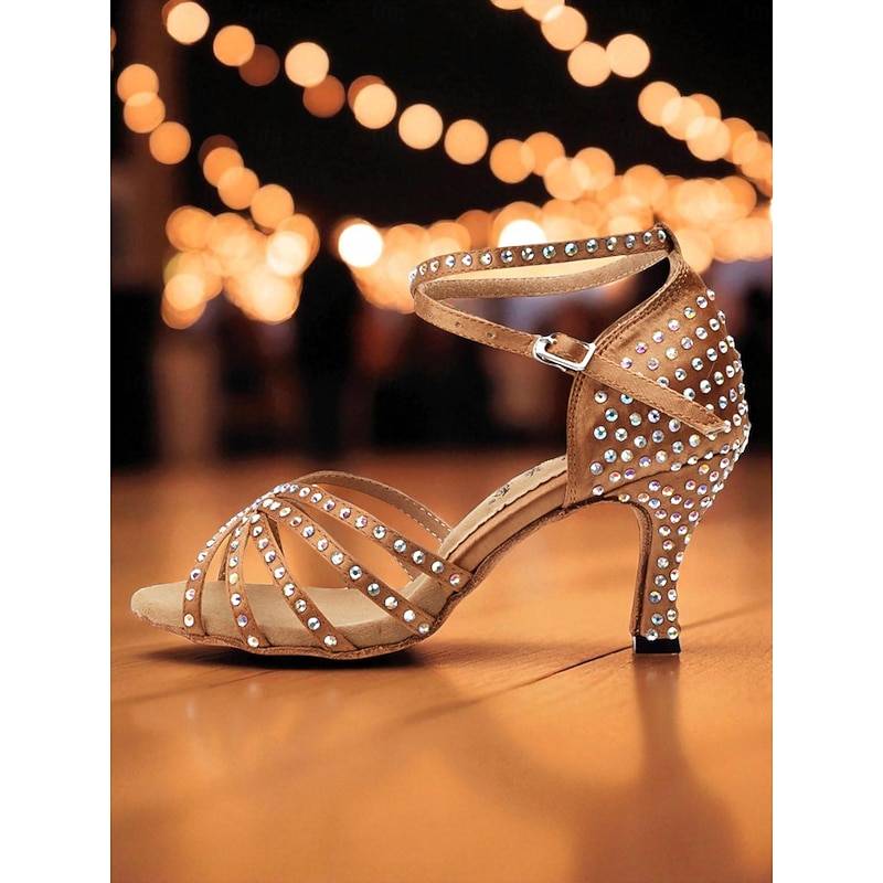 HOT ! Women's Black Rhinestone Strappy Dance Shoes - 1920s Gatsby Ballroom Latin Heels for Party & Performance