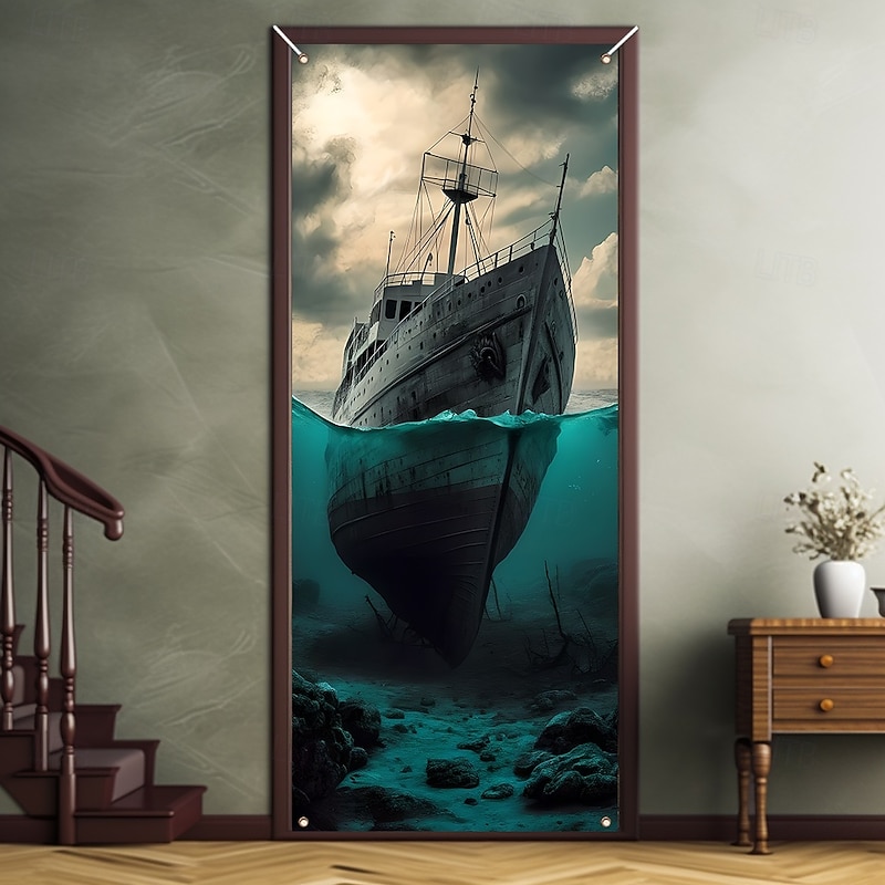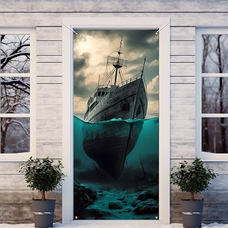 Pirate Ship Door Decorations Door Covers Door Tapestry Door Curtain Decoration Backdrop Indoor/Outdoor Door Banner for Front Door Farmhouse 4