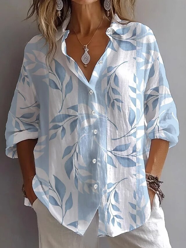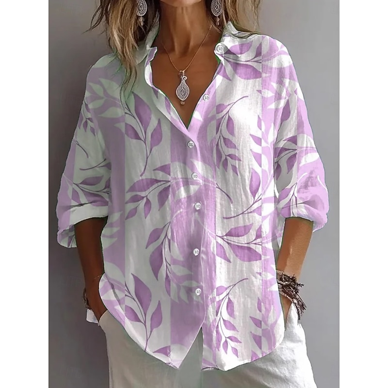 Women's Shirt Button Down Tunic Shirt Collar Long Sleeve Floral Graphic Daily Stylish Casual Regular Tops Daily Holiday s Print Yellow Blue Purple Green Spring 13