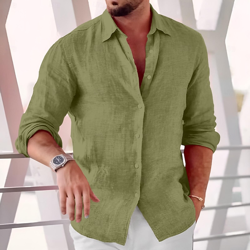 Men's Shirt Linen Shirt Summer Shirt Beach Wear Button Up Shirt Plain Daily Business Casual Black White Pink Blue Long Sleeve Collar Spring & Summer Clothing Apparel 15