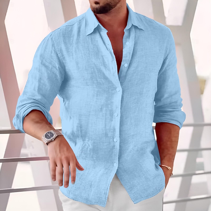 More information about Men's Shirt Linen Shirt Summer Shirt Beach Wear Button Up Shirt Plain Daily Business Casual Black White Pink Blue Long Sleeve Collar Spring & Summer Clothing Apparel