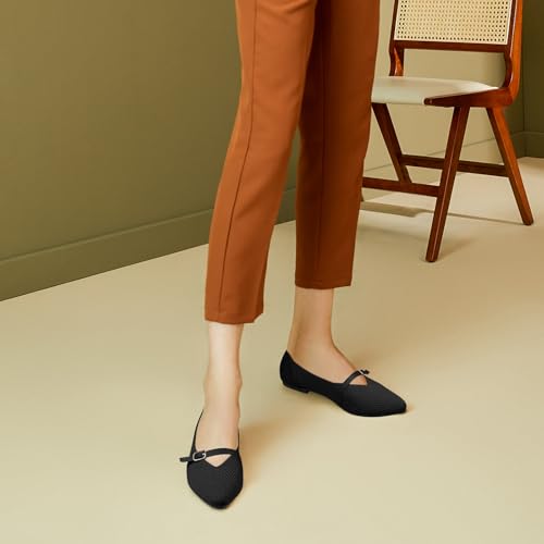 Flats for Women Pointed Toe Knit Ballet Comfortable Dressy Washable Mary Jane Flat Shoes 6