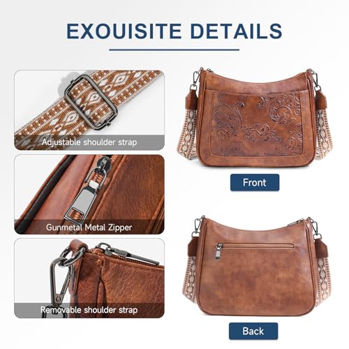 • Vegan Leather Crossbody Purse: This womens crossbody bag features a main compartment with one zipper pocket and one slip pocket; the exterior includes includes one magnetic front pocket and one back zipper pocket