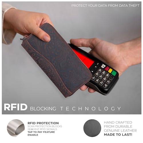 Oak Leathers Leather Wallet for Women - RFID Womens Wallet Clutch with 8 Credit Card Holder, Coin Pocket Vintage Brown Embossed 1