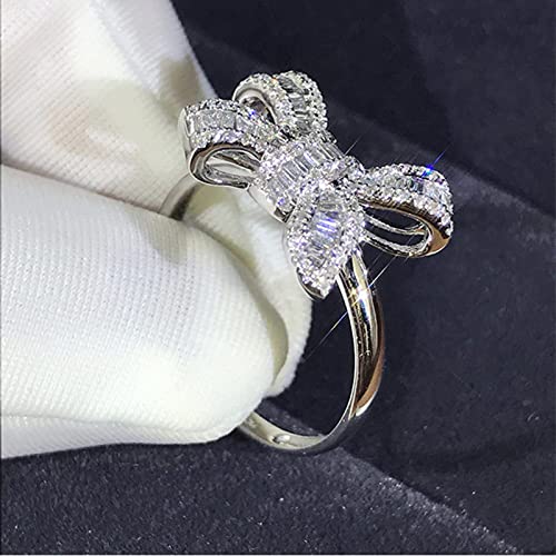925 Sterling Silver Shiny Full Diamond Gemstone Ring Cubic Zirconia Rings CZ Diamond Butterfly Ring Eternity Engagement Wedding Band Ring for Women (US Code 8) 6