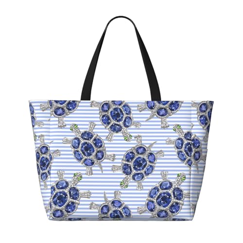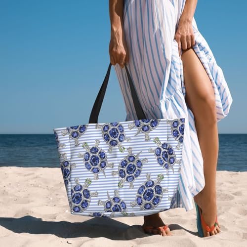 HOT ! Waterproof Sandproof Beach Bag Turtle With Blue Stones Swim Large Tote Pool Bag For Women With Zipper