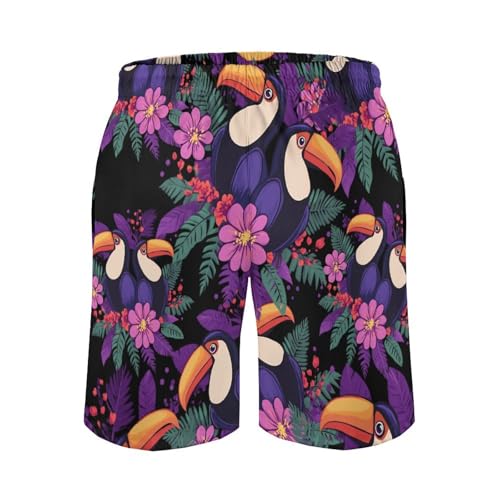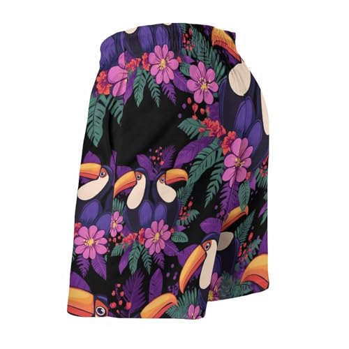 Two Toucans with Flowers Men's Swim Trunks Board Shorts Beachshorts Swimsuits with Pockets Mesh Liner 1