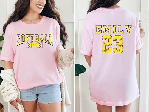 Fabric type: 100% CottonCare instructions: Machine WashOrigin: Made in the USA and ImportedClosure type: Pull On🥎 Show Your Softball Pride – Whether it's game day or practice, this personalized shirt lets every mom cheer in style and spirit!🥎 Bold “Softball Mom” Design – Stand out on game day with a vibrant yellow and white “SOFTBALL MOM” print featuring a heart-shaped softball in the center – perfect for proud moms.🔁 Personalized Back Print – Customize the back with your player's name and jersey number in a fun softball-stitched font. A personal touch that makes this shirt extra special.🖤 contemporary & Sporty Look – The sleek black color and athletic college-style lettering pair perfectly with jeans or shorts for a trendy, sporty vibe.🧵 High-Quality Material – Made from soft, breathable cotton blend fabric for lasting comfort whether you're cheering from the stands or out and about.🎁 Perfect Gift for Softball Moms – Great for Mother’s Day, birthdays, or end-of-season gifts. A meaningful way to show love and support for your favorite athlete. Perfect for everyday use. superior materials and excellent craftsmanship ensure long-lasting durability.