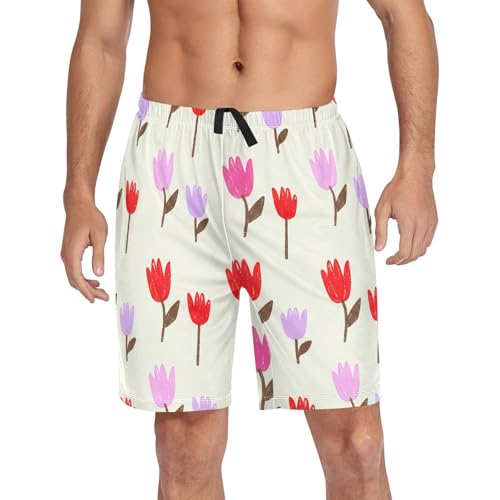 HOT ! Red Purple Flower Pajama Shorts for Men Lounge Pants Lounge Bottoms Men'S Sleep Shorts with Pockets, S-XXL