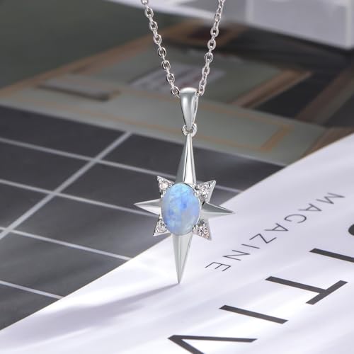 Rainbow Genuine Moonstone North Star Pendant Necklace Sterling Silver Natural Gemstone June Birthstone Jewelry for Women 5