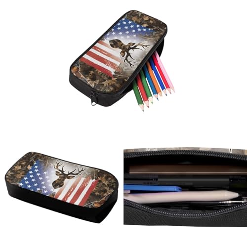 HOT ! School Backpack 4 Pcs Set Include Insulated Lunch Bag and Pencil Box and Water Bottle Bag, School Bookbag Outdoor Travel Bags Casual Daypack for Teens Kids, American Flag Deer Branch