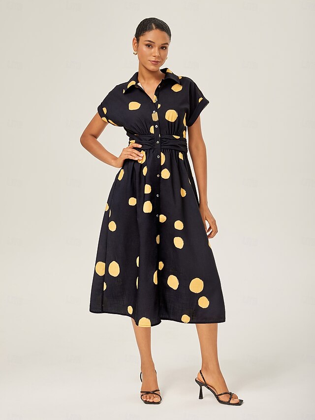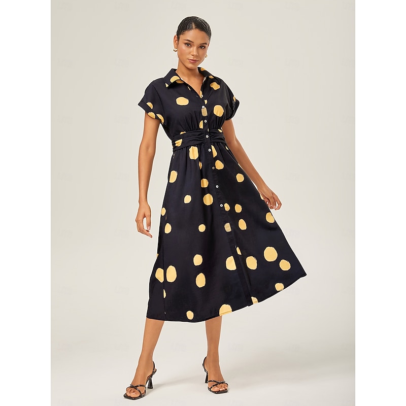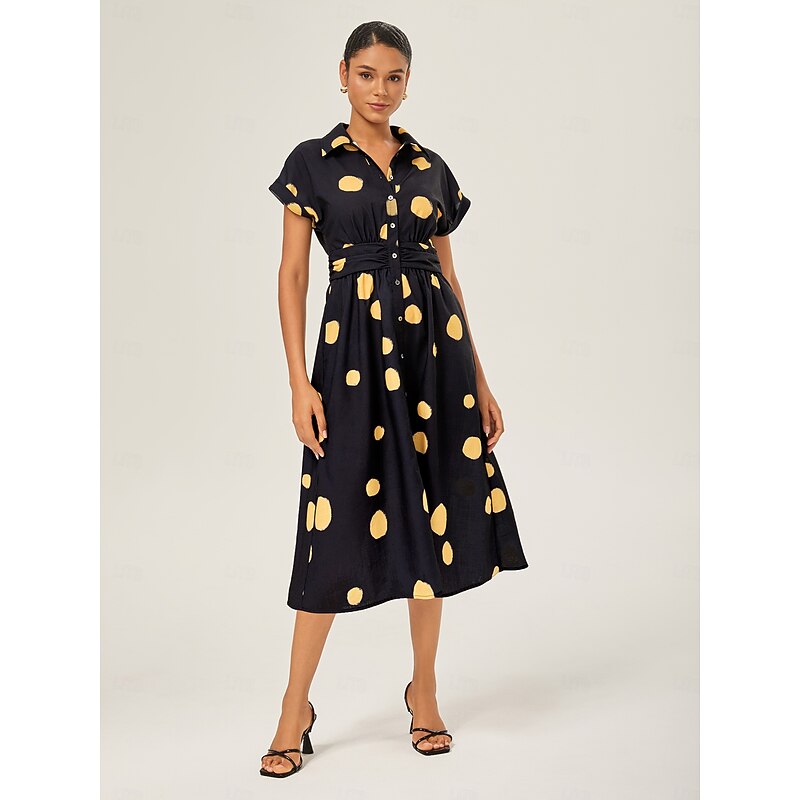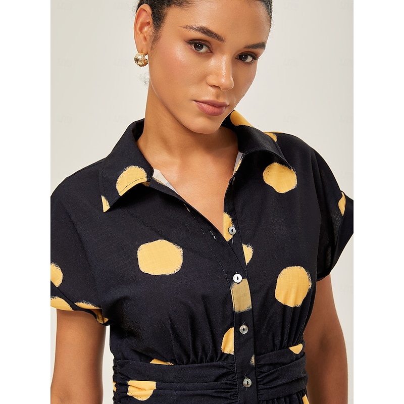 More information about Retro Black Yellow Polka Dot Cinched Dress