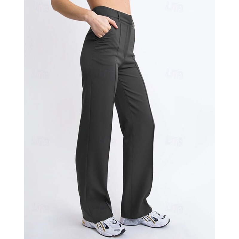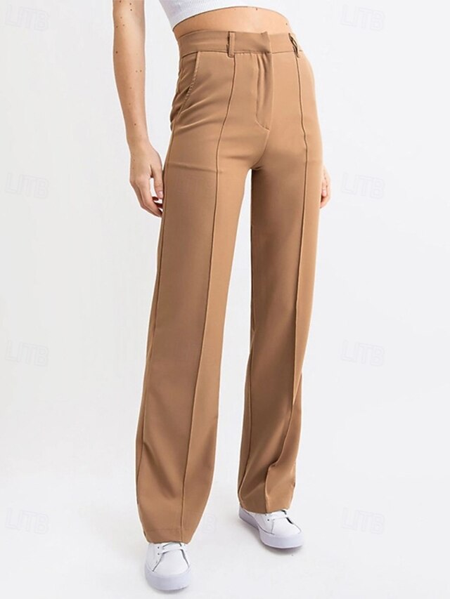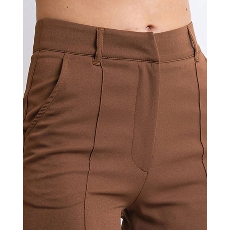 More information about Women's Chinos Straight Streetwear Casual Full Length Medium Waist Plain Pocket Elastic Waist Comfortable Micro-elastic Outdoor Vacation Daily dark brown Amethyst Black Brown Spring Fall Regular Fit