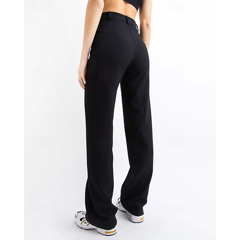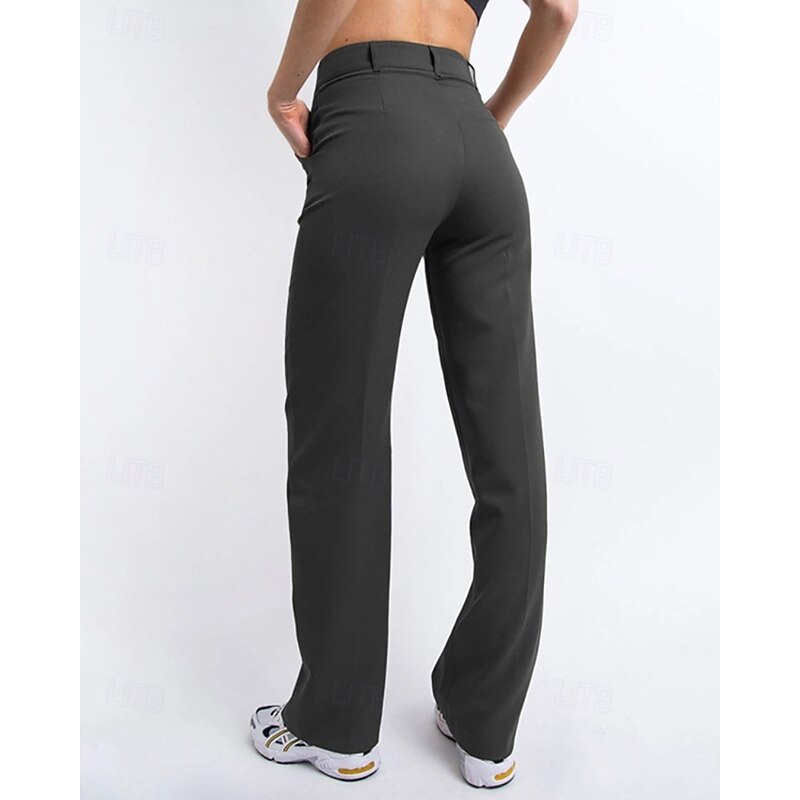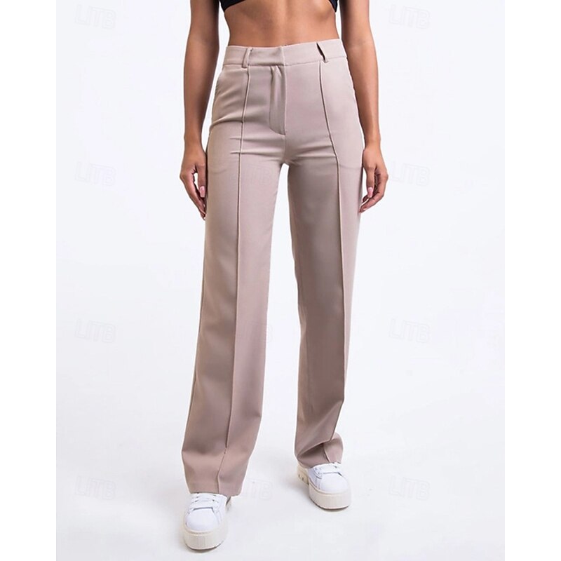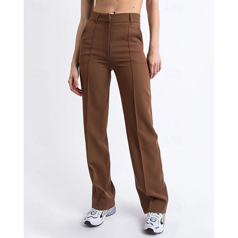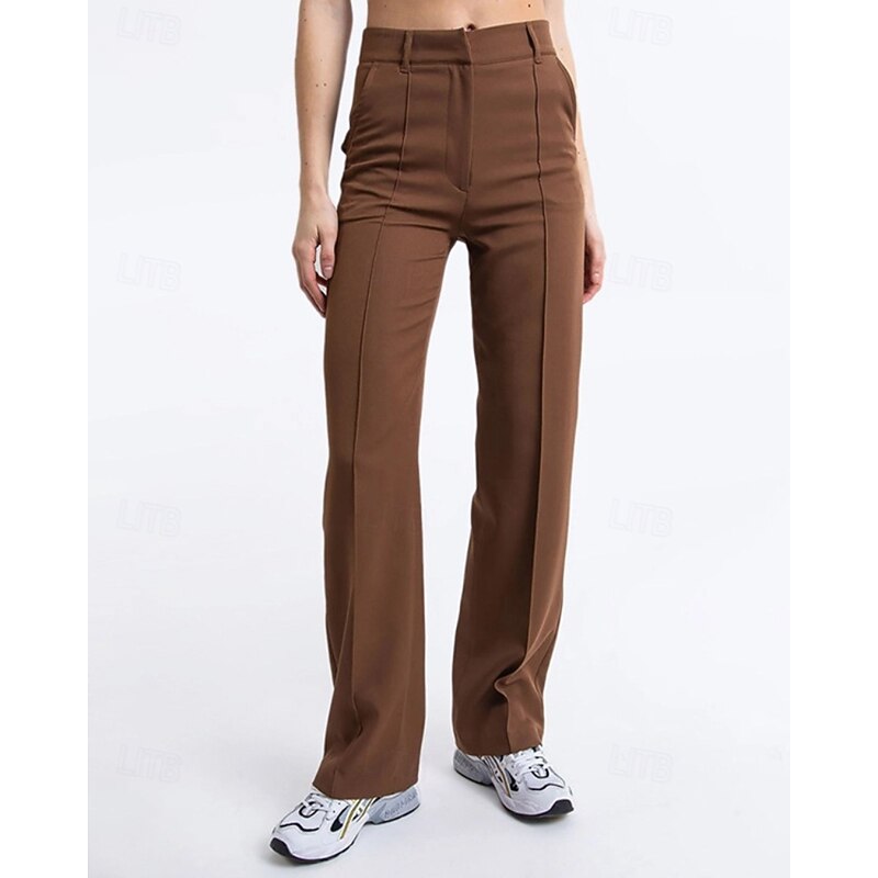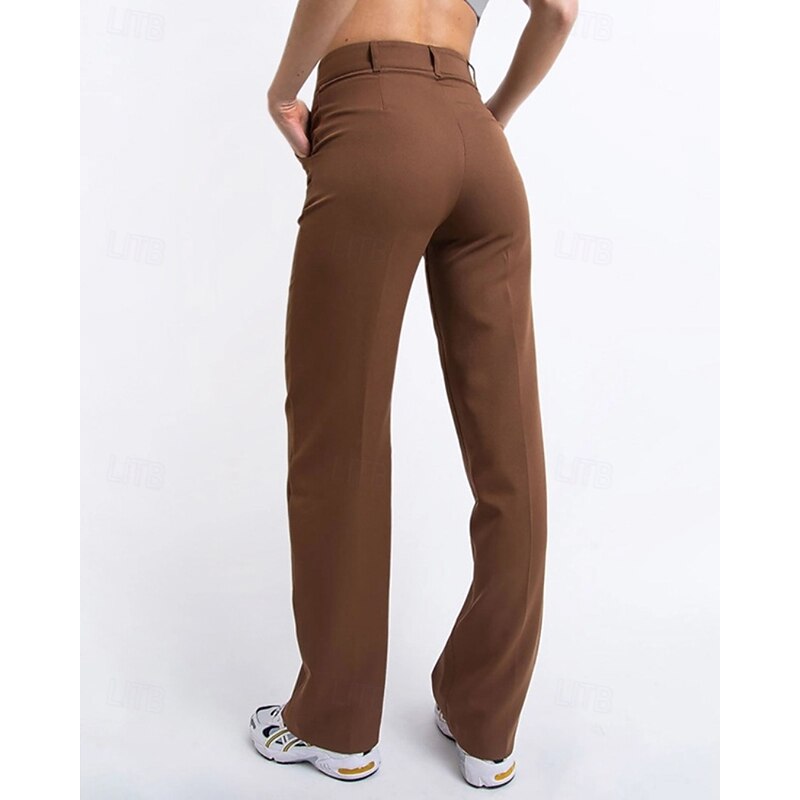HOT ! Women's Chinos Straight Streetwear Casual Full Length Medium Waist Plain Pocket Elastic Waist Comfortable Micro-elastic Outdoor Vacation Daily dark brown Amethyst Black Brown Spring Fall Regular Fit