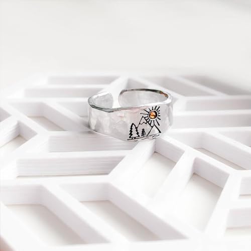 Vintage Mountain Sunset Band Ring for Women Silver Plated Adjustable Statement Nature Forest Landscap Knuckle Hugging Wrape Rings Wedding Christmas Holiday Jewelry Delicate Gifts 4