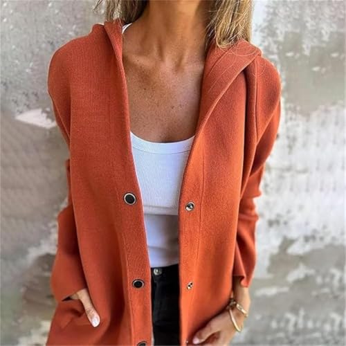Women's Fashion Casual Single-Breasted Hooded Jacket Lightweight Flannel Long Autumn Jacket Elegant Windbreaker 6