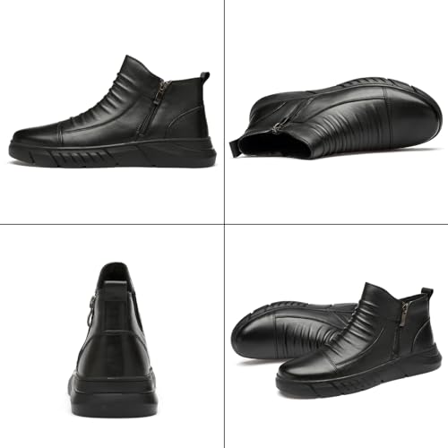 Optigard Men's Italian High-top Casual Leather Boots,Side Zipper Waterproof Non-Slip Warm Fur Lined Business Dress Booties Chelsea Chukka Ankle Boots for Men 3