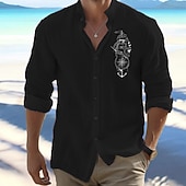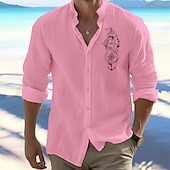 More information about Men's Shirt Beach Shirt Button Up Shirt Compass Outdoor Vacation Black White Pink Orange Long Sleeve Standing Collar Spring & Fall Clothing Apparel Print
