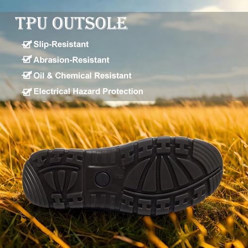 • Ultimate Safety and Protection These men's slip-on work boots are engineered with a KEVLAR midsole for outstanding anti-puncture protection. The durable TPU outsole offers superior slip resistance, oil resistance, and acid resistance, making them the ideal choice for challenging work environments like construction sites, landscaping, farming, and outdoor activities. Choose from soft toe or composite toe options to best suit your protection needs.